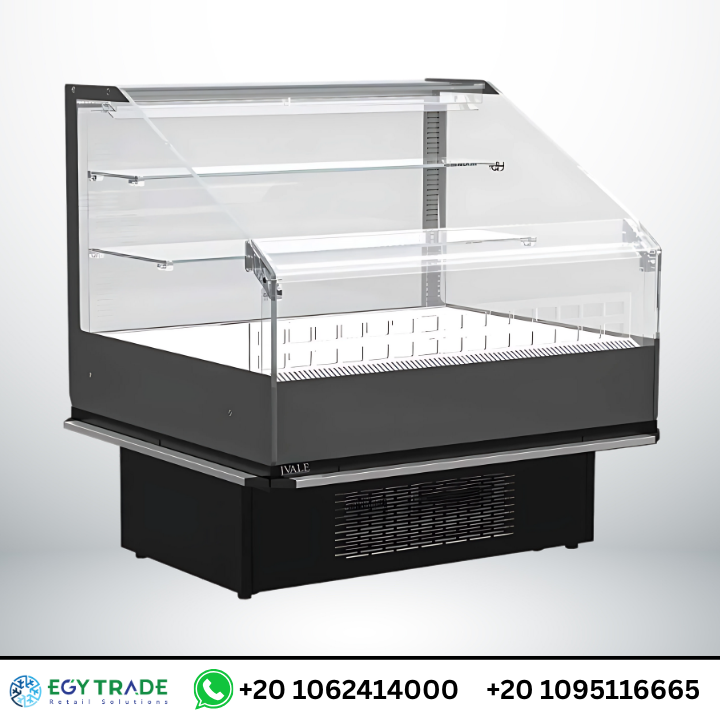 ثلاجة عرض زجاجية من إيجي تريد بتصميم احترافي ورؤية واضحة، مثالية لعرض اللحوم والألبان ضمن تجهيزات السوبر ماركت.